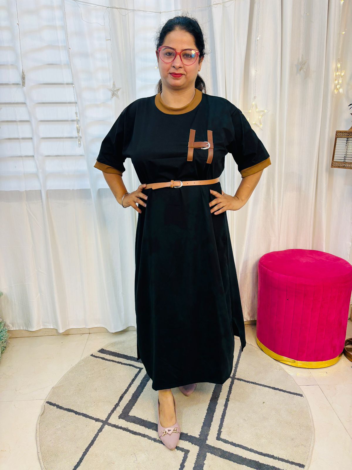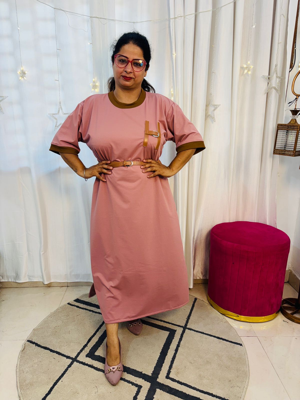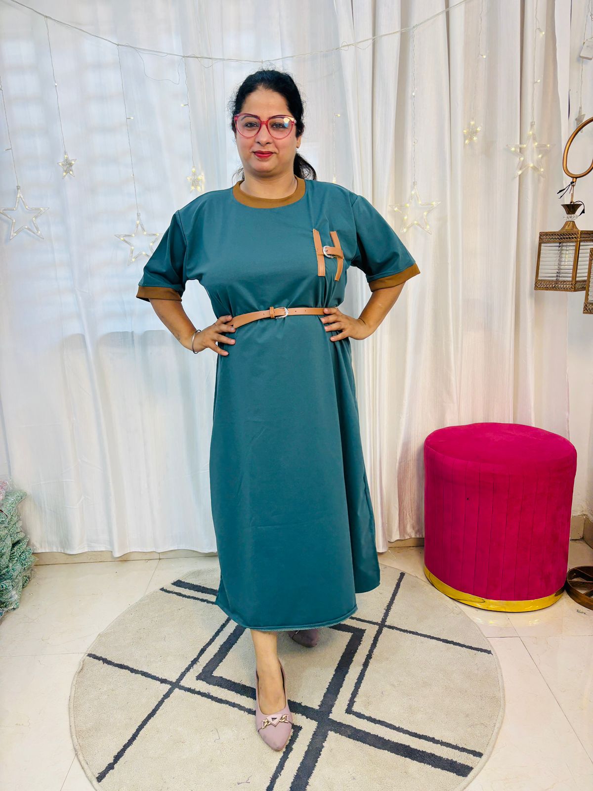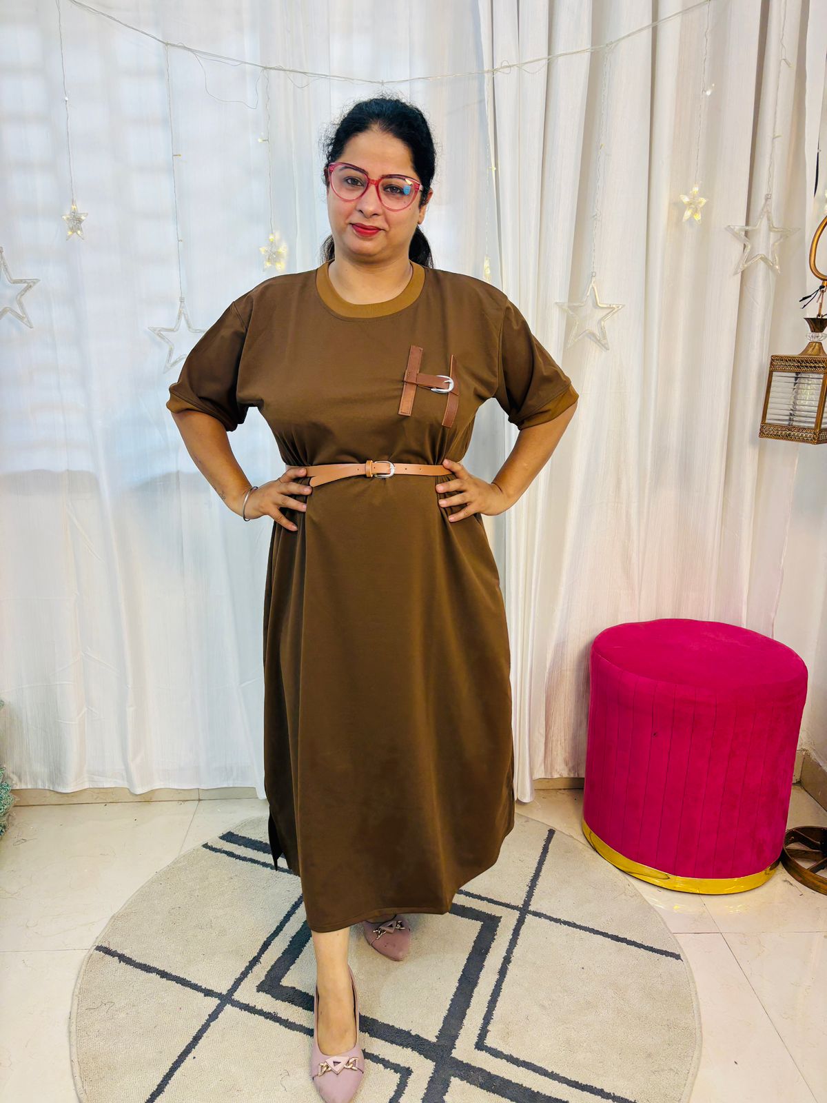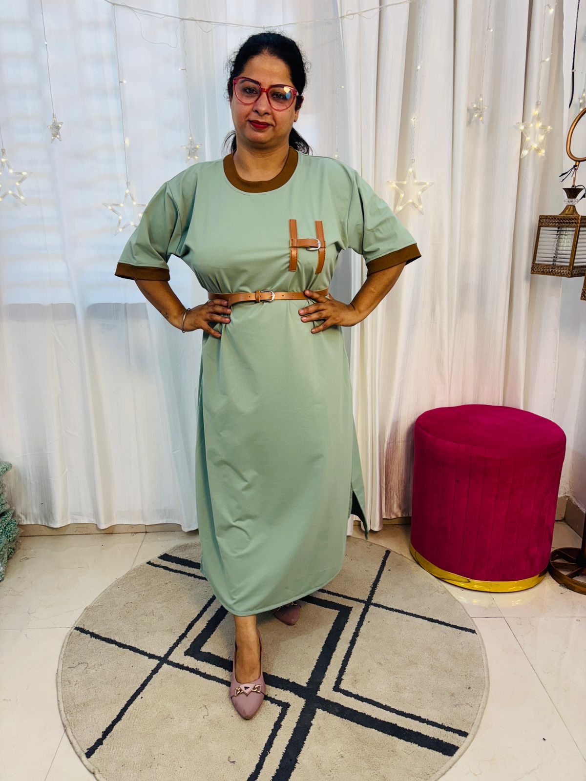 Where softness meets structure, the Sunlit Mist Maxi flows like a quiet breeze through golden hours. Tailored in imported cotton, it offers breathable comfort with a refined finish. The round neckline and short sleeves bring timeless ease, while the belted waist adds shape and subtle sophistication.